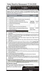 Annual rate contract for procurement of emergency drugs and surgical disposables on LP, IT equipment, Medical Gas, Contigency items etc. for FY 2026-27By admin / April 20, 2026