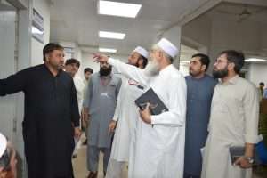 Chairman of Board of Governors, Professor Dr. Farmanullah Khan, visited Khalifa Gul Nawaz Teaching Hospital Bannu, where he reviewed the facilities and administrative matters available in various departments, including the emergency, OPDs, and several administrative offices.