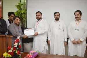 The ceremony began with a recitation of the Holy Quran. Chief Pharmacist Hayatullah Khan Wazir initiated the session by highlighting the importance of celebrating World Pharmacists Day, which is observed on September 25th globally. He emphasized the crucial role that pharmacists play in ensuring the health and well-being of people. He further stressed the need for pharmacists to provide complete guidance to patients about medications, so they not only purchase the correct medicine but also understand its proper usage.